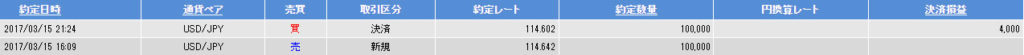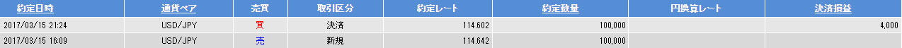 16:00くらいにチャート見ていたら円高気味に動いたので、今日も米ドルの