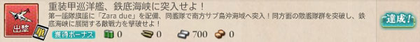 今回も艦これの任務です。 前回記事の「潜水艦隊、中部海域の哨戒を実施せよ!」をクリアすると 「重装甲巡洋艦、鉄底海峡に突入せよ!」が発生するようです。 艦隊これくしょん -艦これ- 攻略 Wiki*によれば、この任務の達成条件 は ①「敵サーモン方面主力艦隊」(5-3ボス戦)にA勝利以上