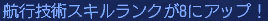 気づかぬうちに航行技術が8になっていました(泣)。 スキルランクが上がった瞬間のポップアップのスクリーンショットを撮影したかった んですけどね―――――。 なかなかうまくいかないもんですねえ。 それでは今日はここまで。