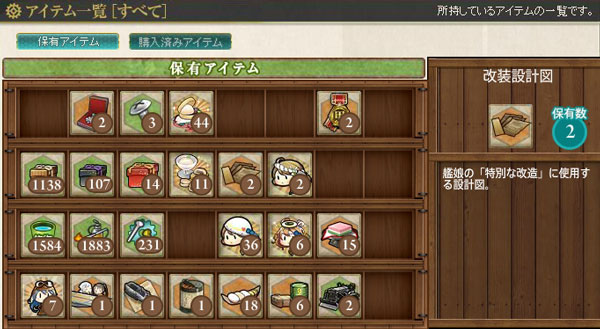 当鎮守府の改装設計図および勲章の保有数では、度重なるコンバートにはとても