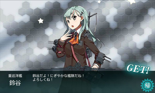 鈴谷の入手方法は、建造するか2-5ボス、4-5ボス、5-4ボス、5-5でドロップの