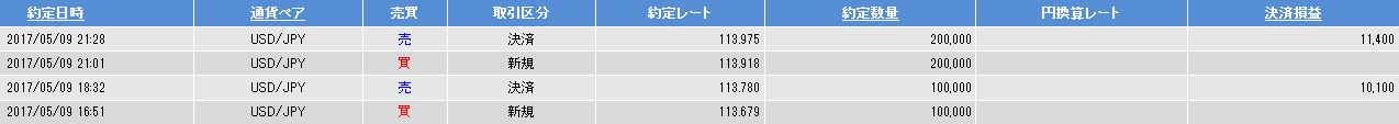 これも利益が10,000円を超えた時点、かつ114円の手前で確定しました。