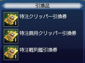 特注クリッパー・特注商用クリッパー・特注戦列艦との引換券いずれかを獲得する