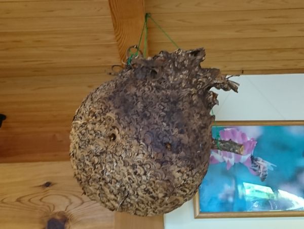 入り口の正面には大きな蜂の巣が天井から吊り下げられています。