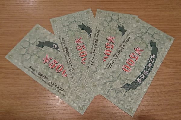 優待券500円✕4枚の出番です。