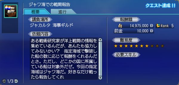えんじゃく提督のレベリングの場であるジャワ海だと、ジャカルタの海事依頼