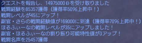 戦闘経験値を85,357獲得し、戦闘レベルは45に達しました!