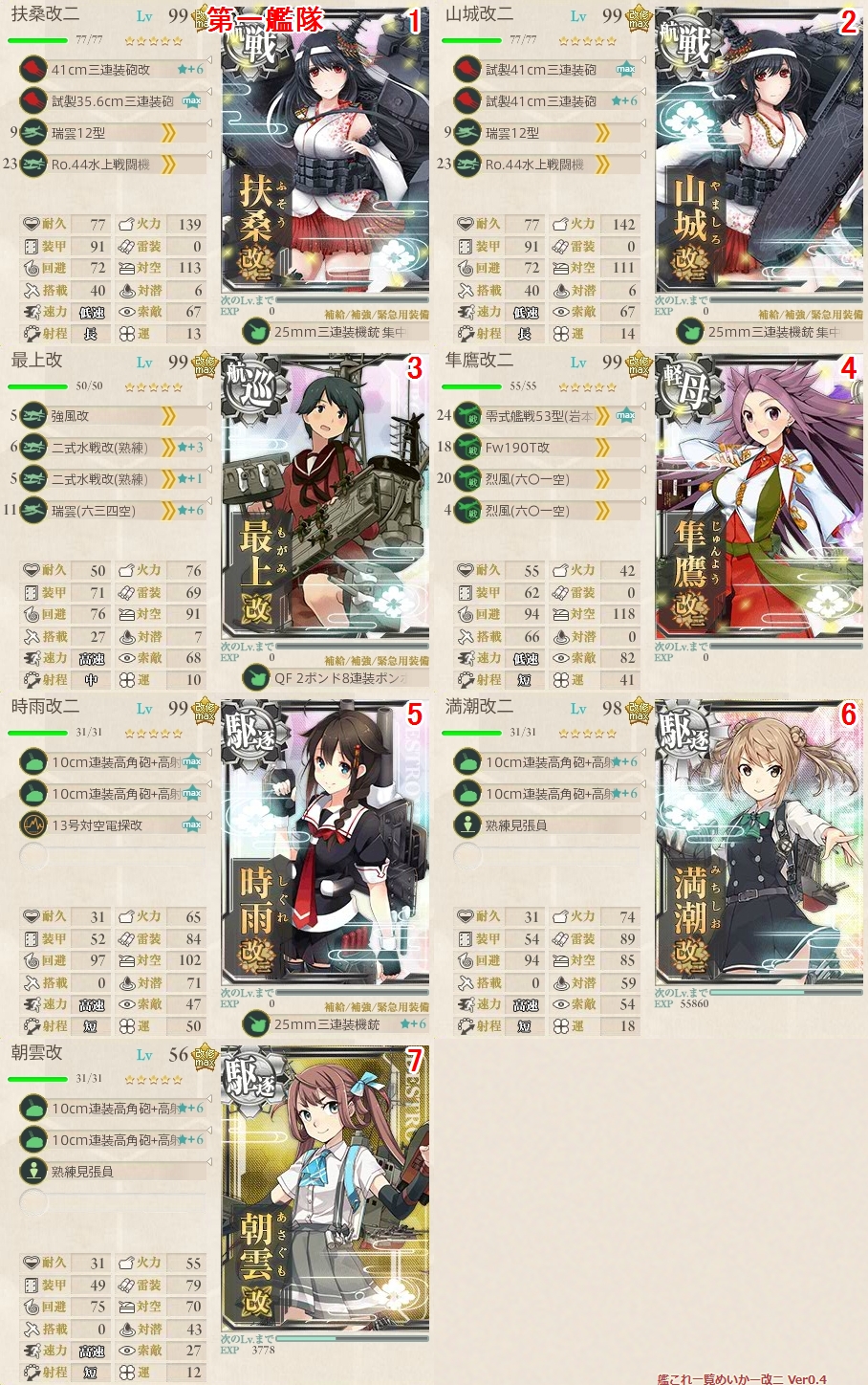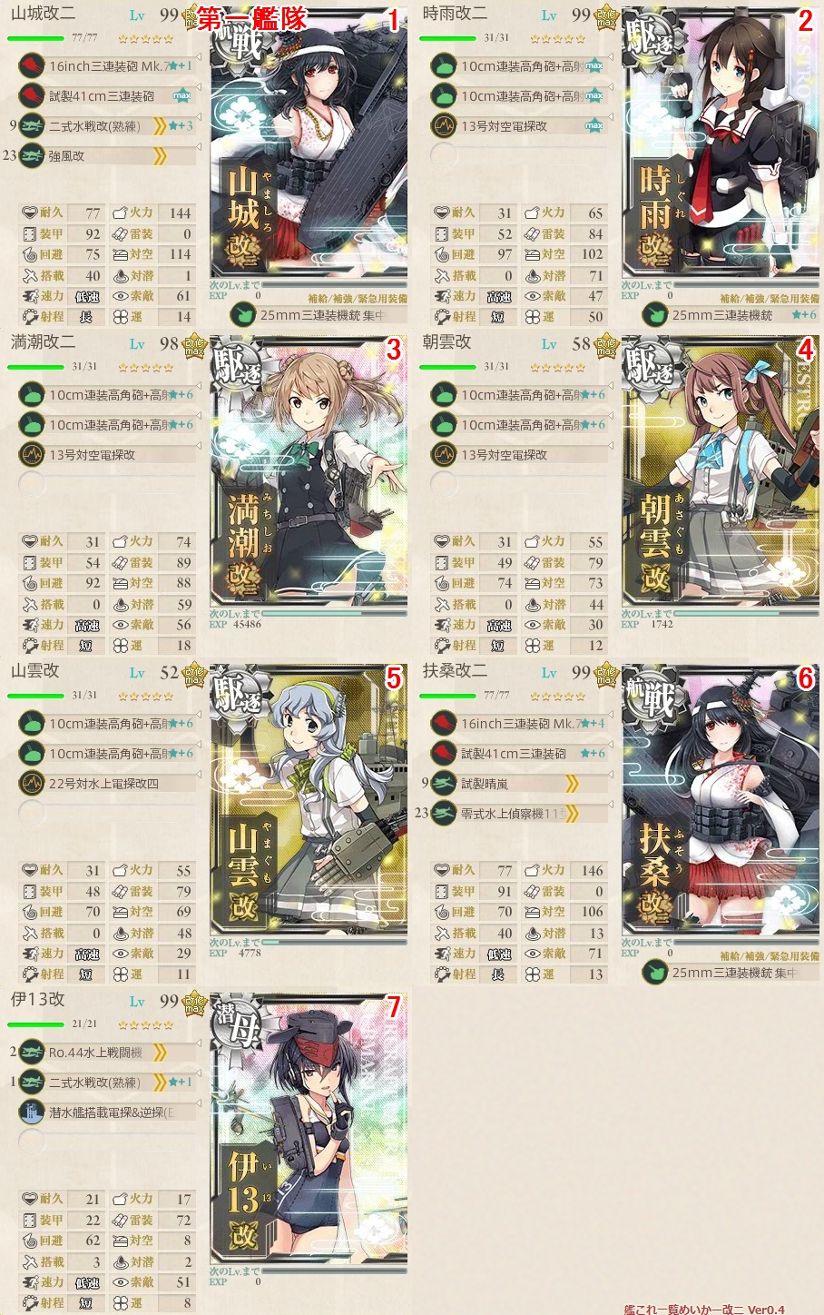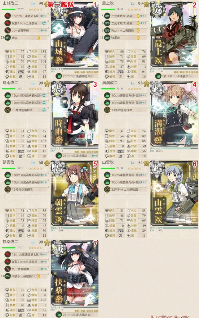 そこで、旗艦の山城と最後尾の姉様にダメコン(女神)を搭載して一縷の