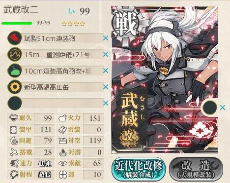 武蔵改二のような高コスト改装化の流れに逆行するかのように、昨夜