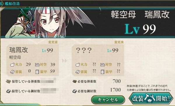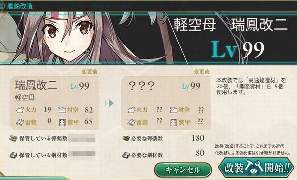 瑞鳳の改二化が実装されました。