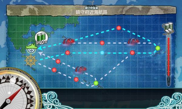 このようにドラム缶搭載艦を2隻用意して上ルート固定、さらに水母のコマ