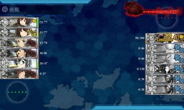 ここでは2戦目のDマスが夜戦スタートであり、初回のアタックではもがみん