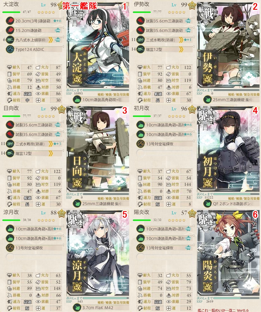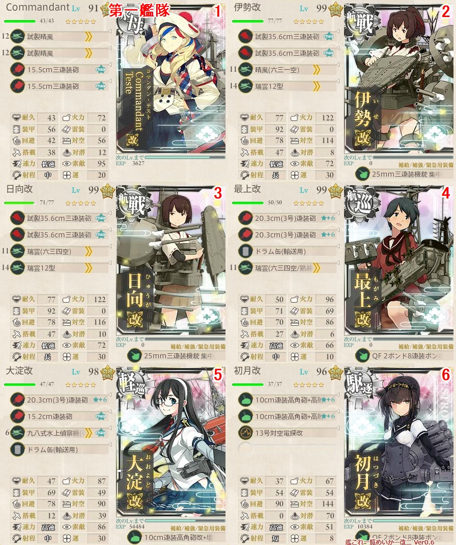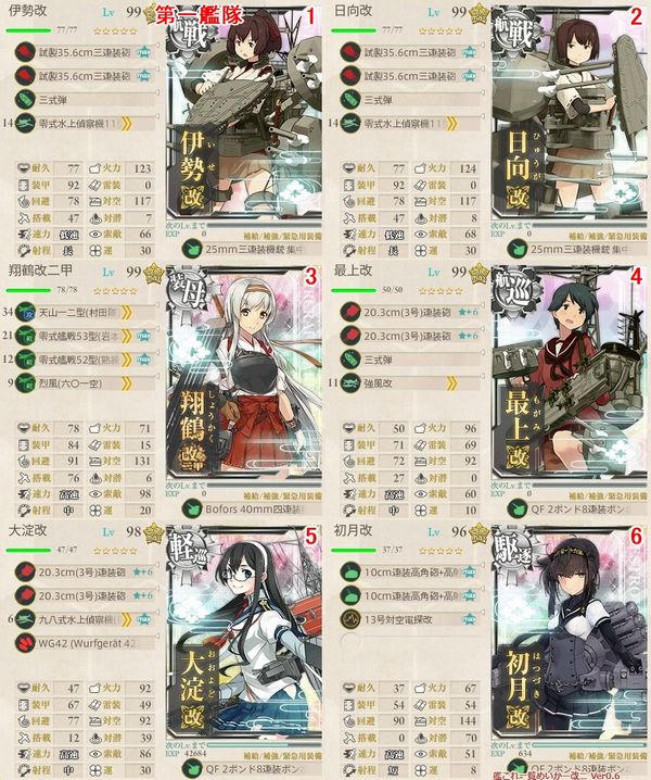 当鎮守府では以下のとおりの編成にしました。