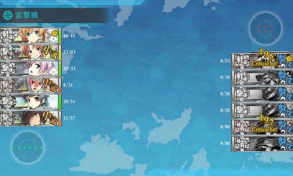 なお、砲撃戦後の雷撃を霰ちゃんが食らってしまいました。