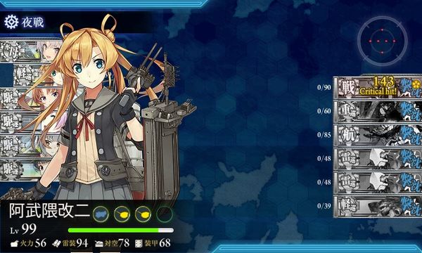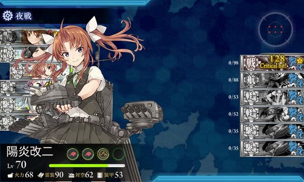 なんとか3回目のアタックでボスマスに到達、夜戦にもつれ込み