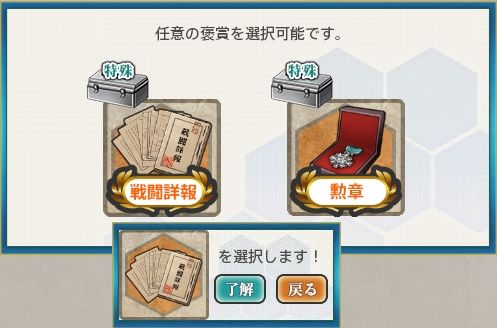 2個目の選択は、最近の改二ラッシュから勲章にしようか迷い