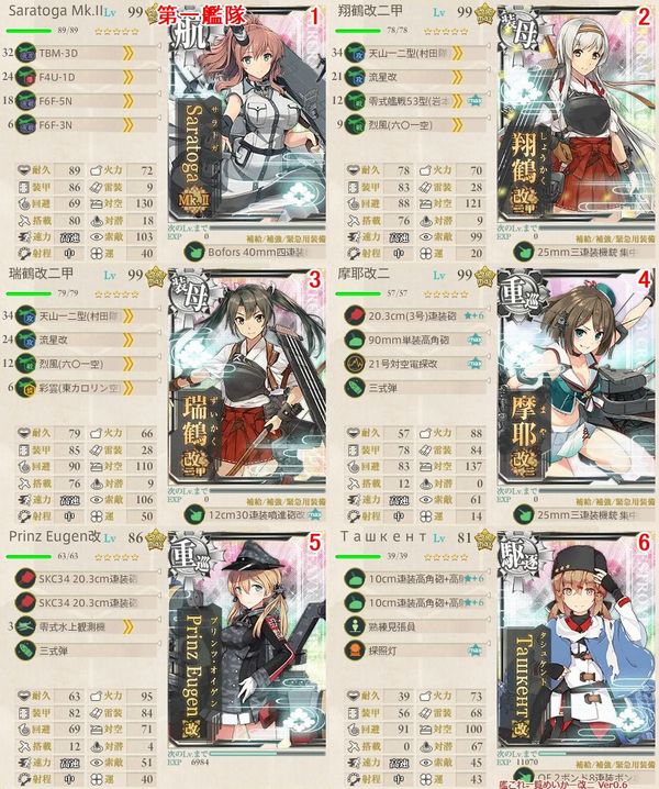 軽母3、軽巡1、駆逐2として、駆逐2に熟練見張員を搭載しました。