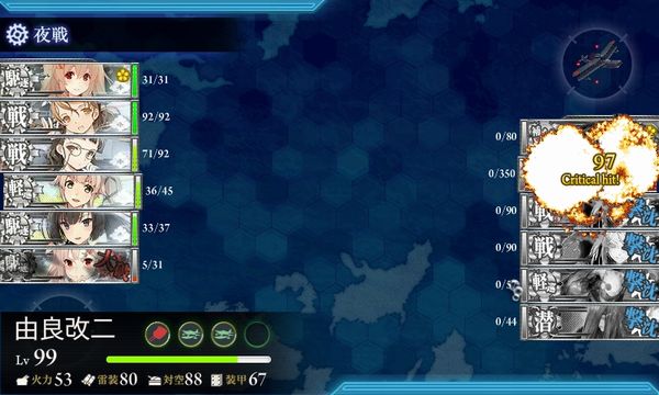 ぽいぽいが大破させられるという不運があり、昼戦では敵潜に