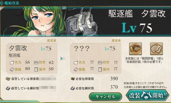 戦闘詳報1部とここで改装設計図1枚を必要とします。