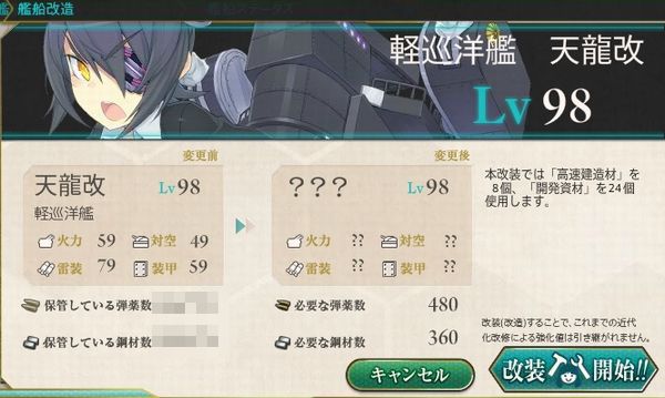 いわれていた天龍ちゃん、さらに夕雲姉さんまで今回のアプデで改二