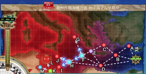 ※ 重巡を軽巡に変更するとT経由らしいですが、試していないので詳細は不明です.....。