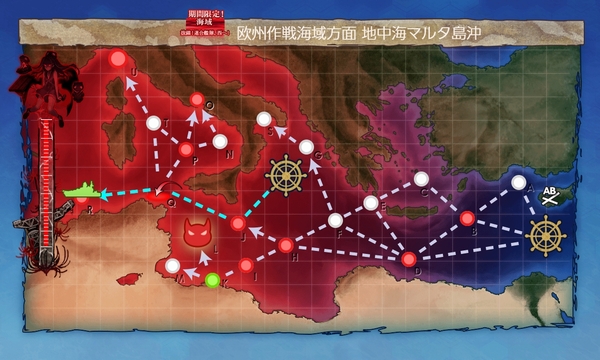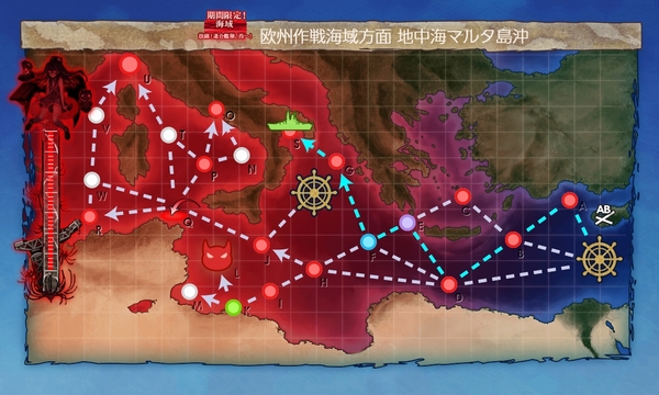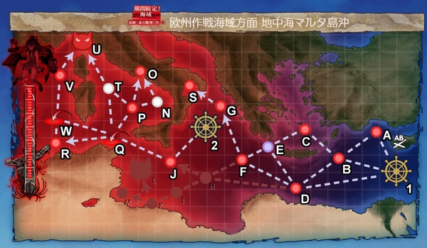 Qマスから実質2ルートの分岐となり、V経由だと空襲戦と対エリレ戦、