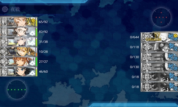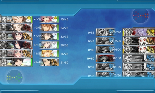 さすがに昼戦終了時に船渠さんと集積さんが小破状態で残ってしまった