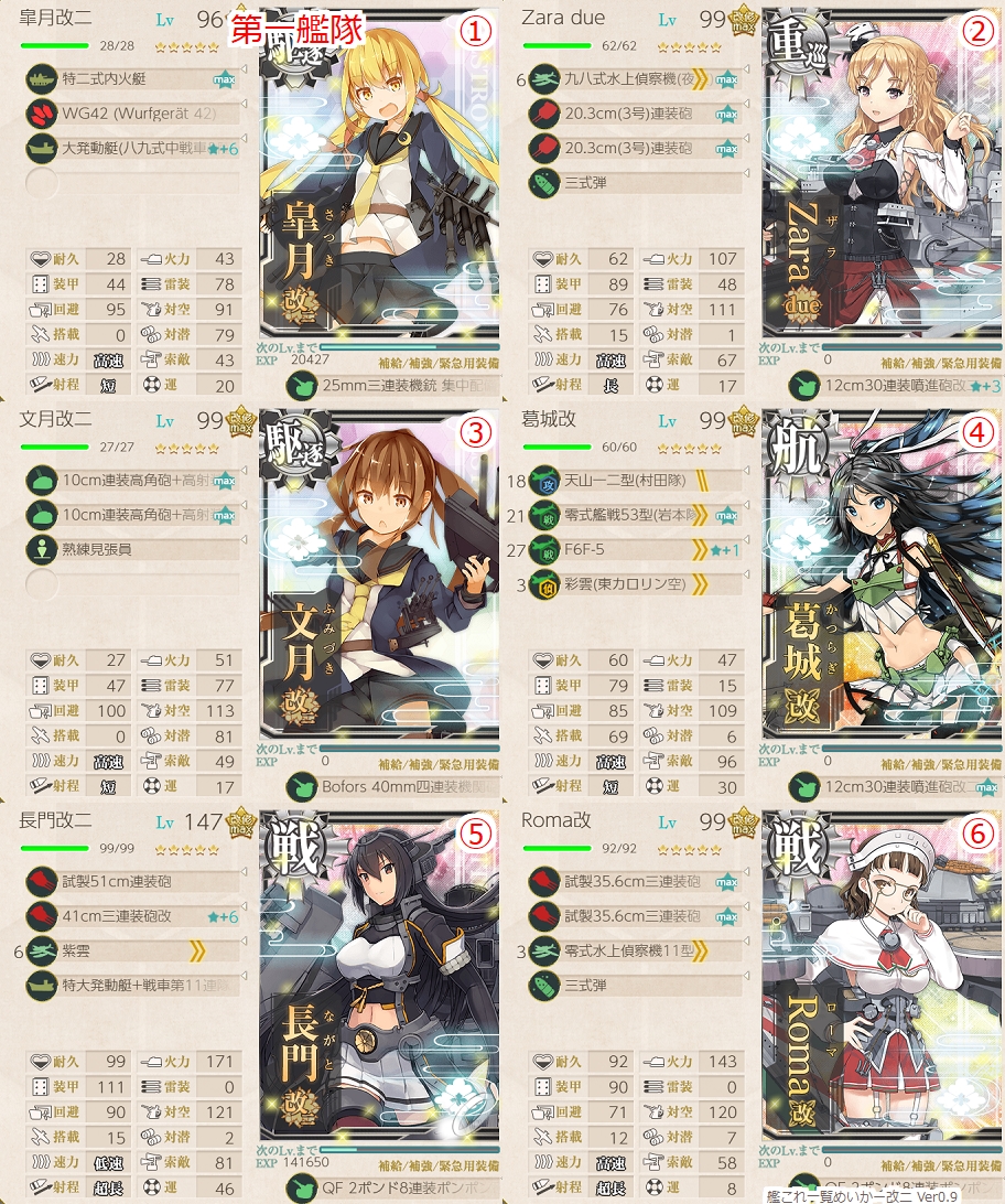 E4で投入した艦娘の中から上記編成にしました。