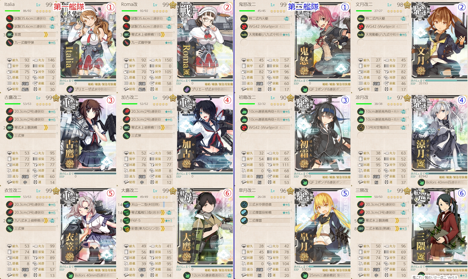 そこで、攻略中に練度99になったふみぃに秋月砲✕2と士魂部隊を搭載