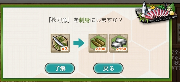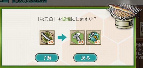 さて、任務が終了したら入手した秋刀魚を調理することで