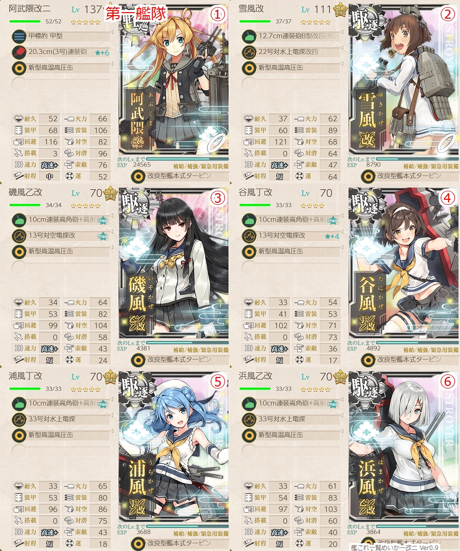 当鎮守府ではすでに磯風乙改・浜風乙改・浦風丁改化していたので、