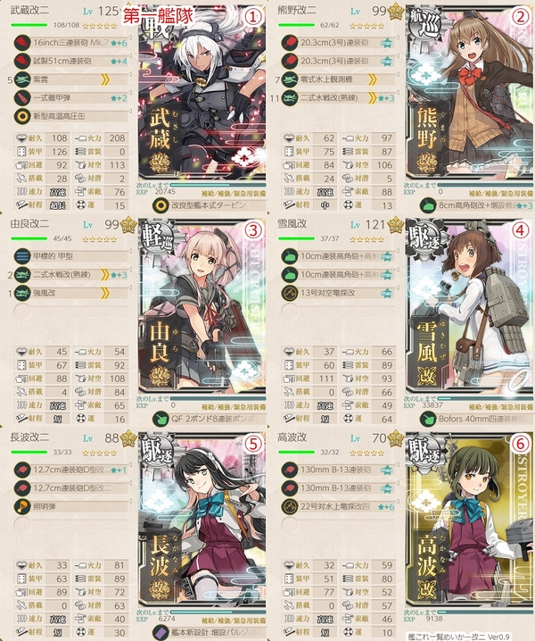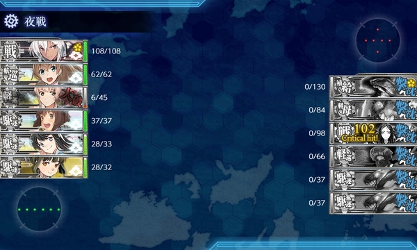 この編成で5-4海域の中央ルート(敵水雷戦隊戦1、夜戦2)を進行すること