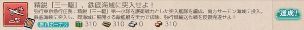 前々回の記事で北方海域警備を実施せよ!を達成した後に