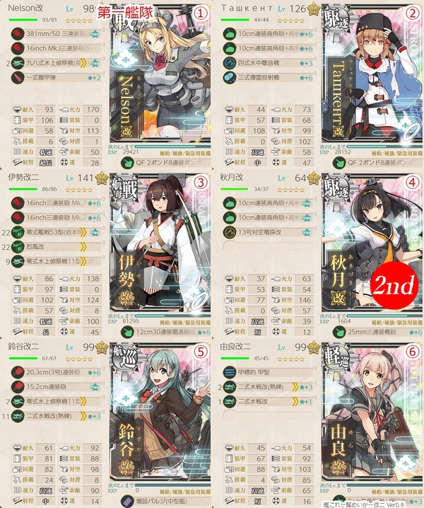 目的は4戦目の夜戦マスでのNelson Touchの発動ですので(笑)、旗艦
