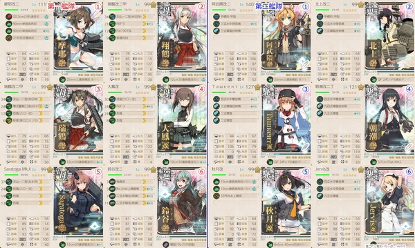 初戦のCマス対策に先制対潜可5隻、2回の空襲マス対策に摩耶様と