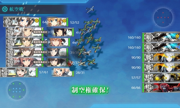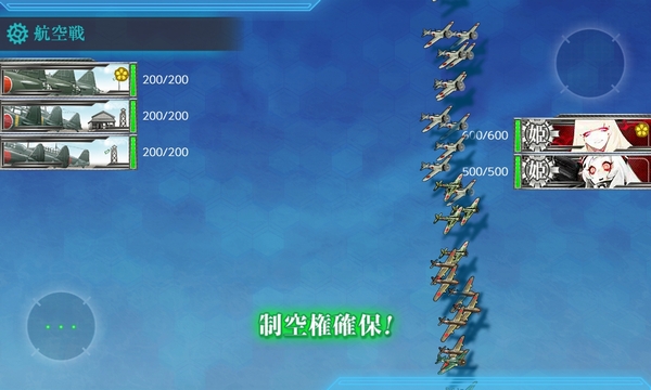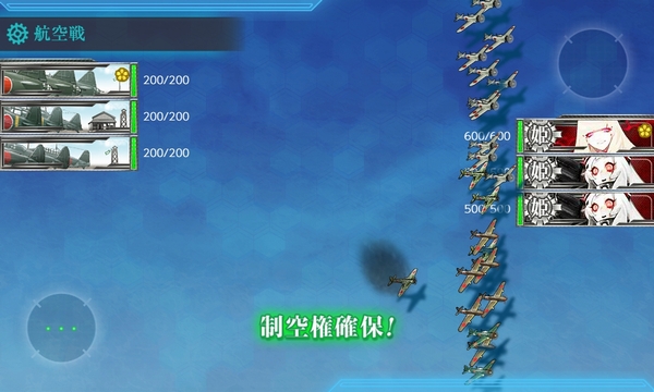 実際に試してみた結果、敵4隻編成の場合だと航空優勢どまりとなって