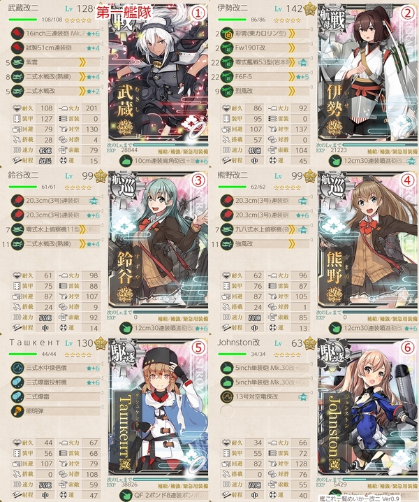 伊勢改二を制空要員とし、武蔵改二と鈴熊で制空補助と連撃を兼ね