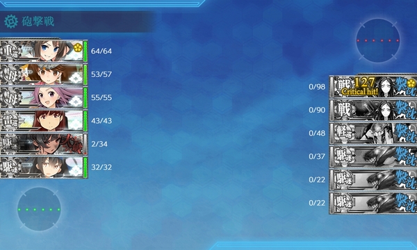 しかし、今回の当鎮守府では戦2装母2航巡2での上ルート進行でゲージ削り