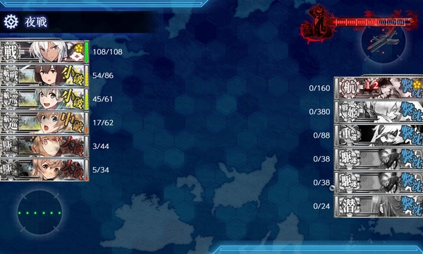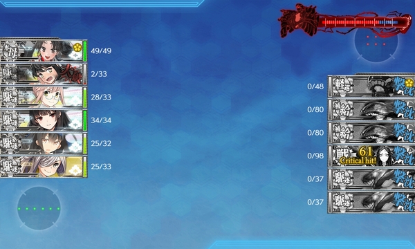 もちろん道中・決戦支援を出した状態で、11回出撃中道中大破7、敵旗艦の