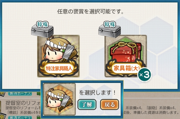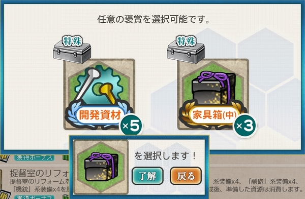 褒賞は各鎮守府の在庫に合わせた選択でいいかと思います。
