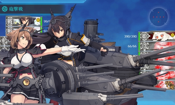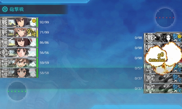 あらあら砲の発動が不可欠です。 実際に初回のアタックでは不発動のため、案の定神威ちゃんが大破.....。 ただ、言い換えれば2戦目を凌げればボスマス到達はそれほど困難では なく