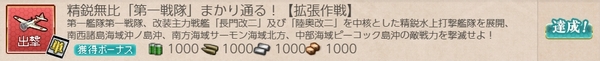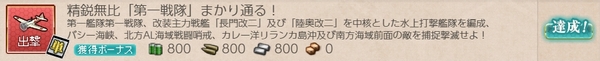 以上の艦隊で1-2・1-3・1-4・2-1の各海域でS勝利を獲得せよというものです。