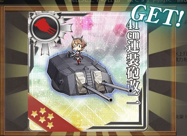 ネジ5個と同価ならアイテム屋で売ってくれないかなと思いつつ選択! そしてそして―――――。むっちゃん妖精がかわいい41cm連装砲改二を大本営より賜りました。 これ、★MAXにするのに★+7以降に試製41cm三連装砲が改修餌に なるんですね.....。