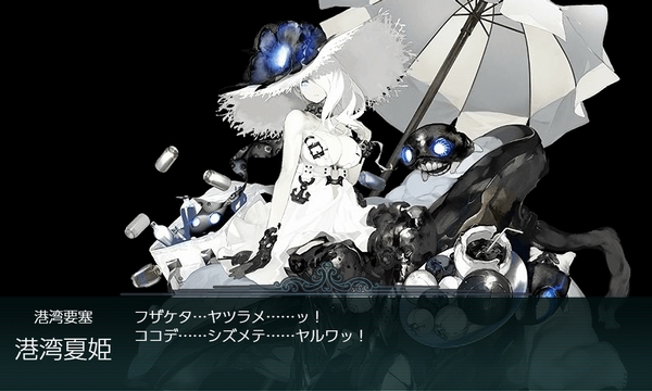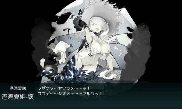 あまりストレスなくスムーズにボスマスまで進行できています。 そして、ボス戦も旗艦の港湾夏姫はさすがに厄介ですが、毎度毎度の集積 さんなどは当方の装備次第でダメージコンテスト開催となるくらいですので、 夜戦込みで考慮すればさほど手強くない印象で、特記事項もなく