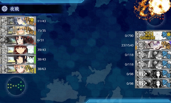 くれるのですが、やはり火力不足のせいか昼戦終了時に敵旗艦・2番艦が中破