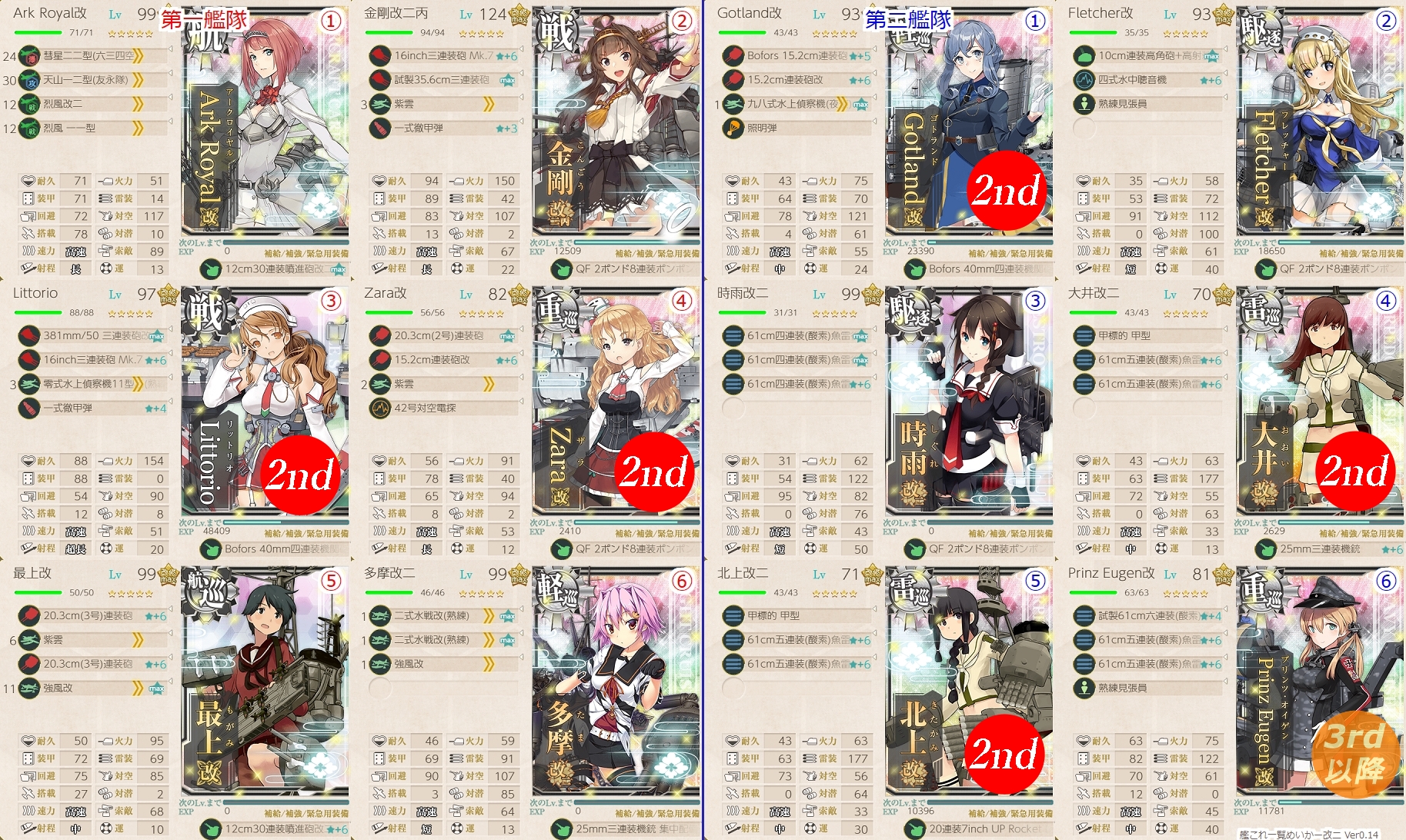 もちろん、第一艦隊旗艦のアー様をはじめ、要所は1st艦を投入しますが、これ