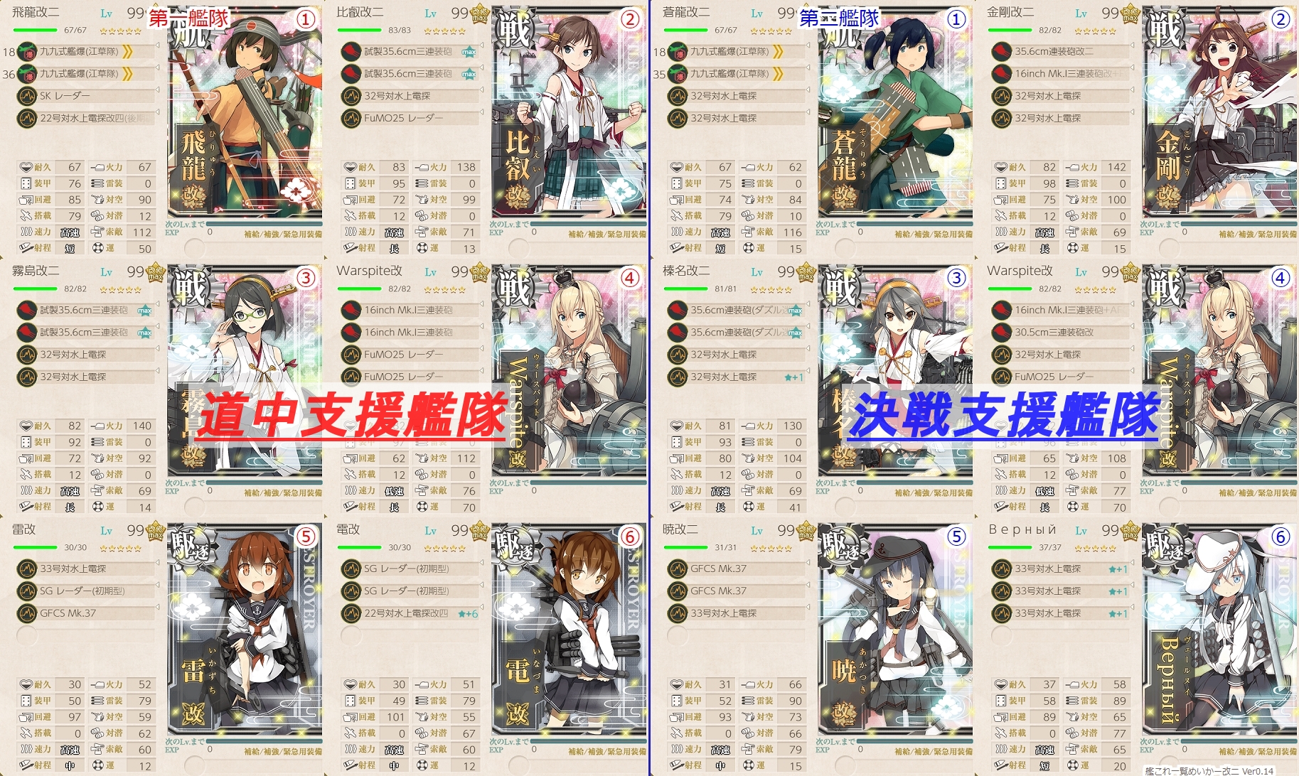 支援艦隊はE-2-1と同じ艦隊をゲージ削り時から投入しました。