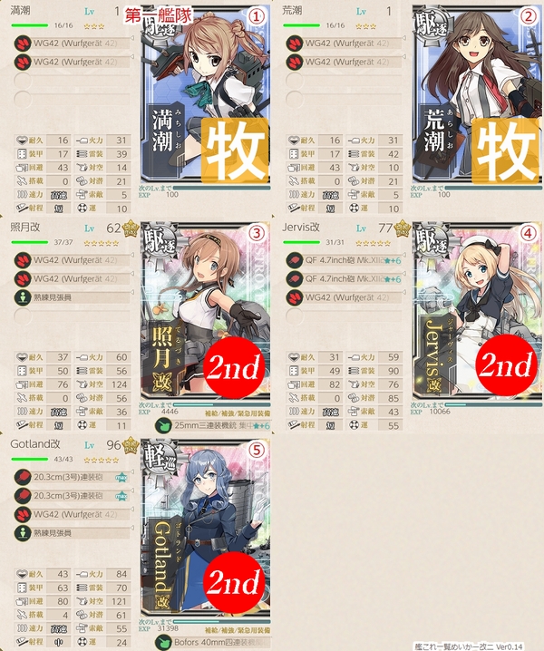 なお、旗艦・二番艦が2スロですのでボス戦での火力不足が懸念材料ですが.....。