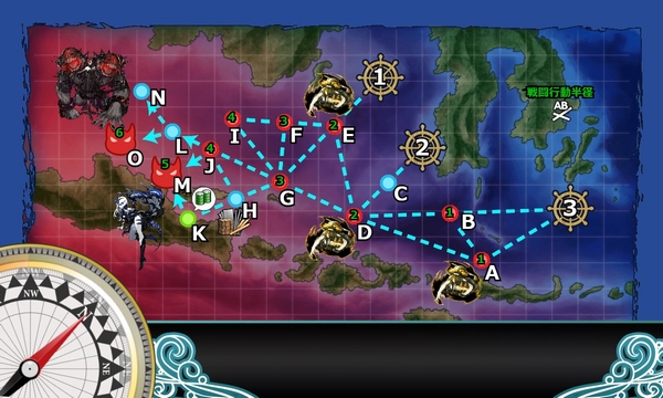 この海域は編成する艦隊によって出港地点が変化(輸送→1、水上→2、機動→3)