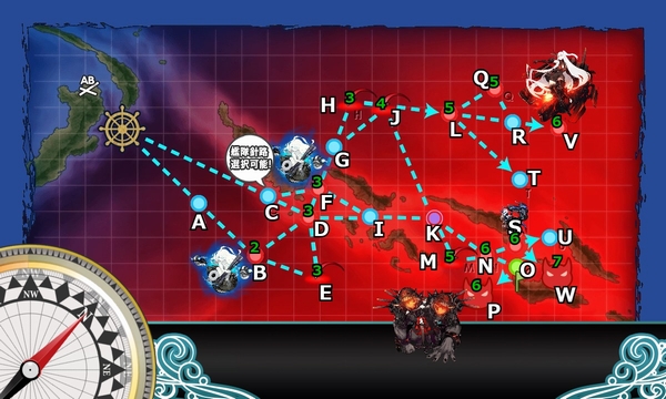 このとおり戦力ゲージと(一応)最終ボス艦隊が展開するWマスへの進行ルート
